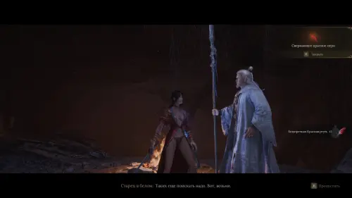 Дорога, ведущая направо, отмеченная голубой стрелочкой, будет вести к Старцу в белом, который даст вам Безупречную красную ртуть. Там же вы сможете подобрать Сверкающее красное перо.