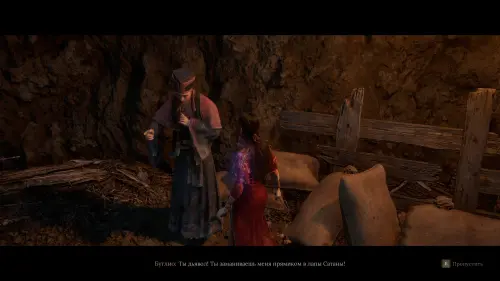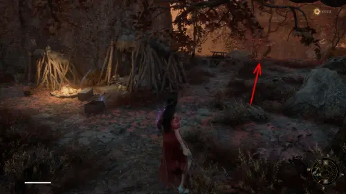 Развернитесь назад и спуститесь по лестнице справа в Главный лагерь мятежников. Прежде чем бежать вглубь лагеря, сверните влево и зайдите в пещеру. Поговорите с Буглио, чтобы продолжить его квест.