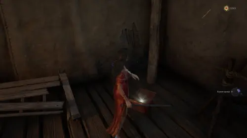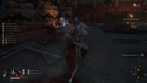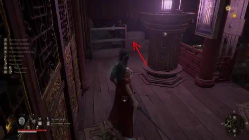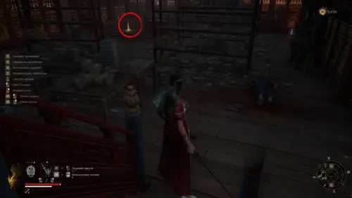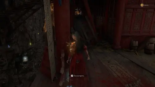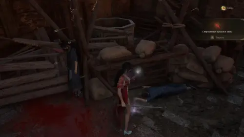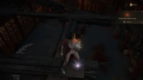 Пройдите в левую часть двора и зайдите в дом слева. Убейте моба-перевертыша и возьмите Сверкающее красное перо.