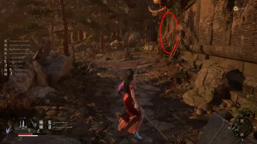 Заберите из правой части двора Росток бамбука и зачистите локацию от врагов. Подойдите к подсвеченному трупу, чтобы получить одно из лучших заклинаний игры — Эфемерность.