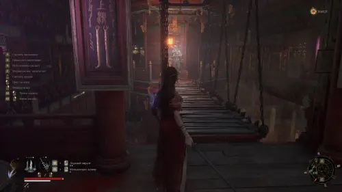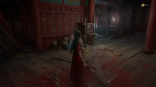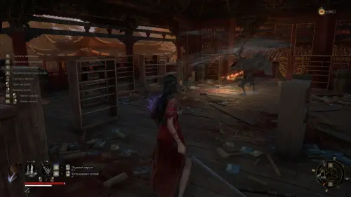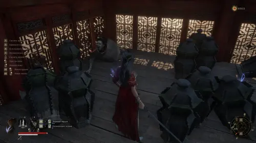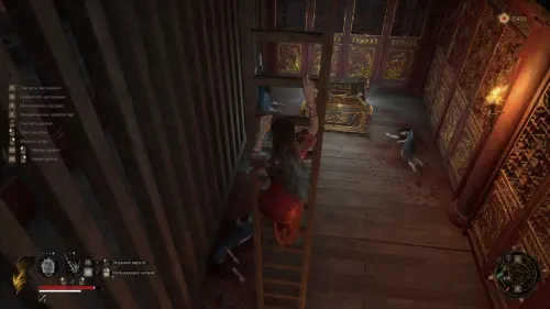 Заберитесь на крышу пагоды справа и пройдите по мостикам в следующее здание. Зачистите помещение от жрецов лотоса и спуститесь вниз по лестнице.