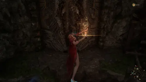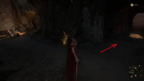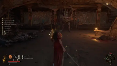 Взаимодействуйте с рычагом и пройдите в противоположную часть зала по образовавшемуся пути. Бегите дальше и спуститесь по лестнице в комнату с вазами. В дальнем левом углу будет находиться враг-мимик, убив которого вы получите Сверкающее красное перо.