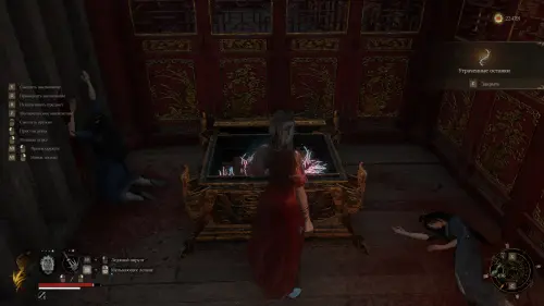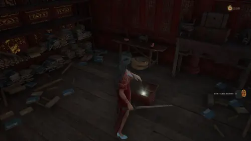 Спуститесь на первый этаж, чтобы разблокировать проход в соседнее здание и вернитесь назад в комнату с золотым сундуком.