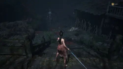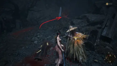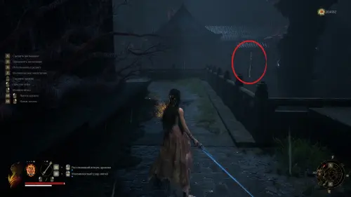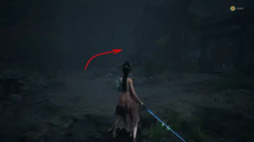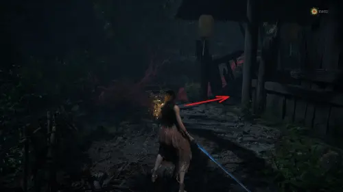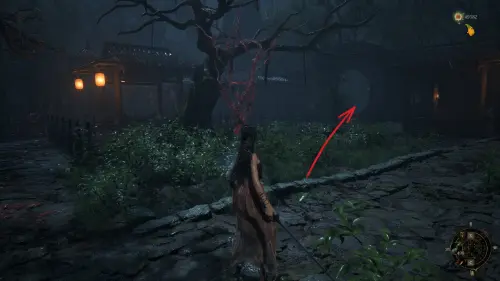 Убейте моба-птицу и бегите вперед. Как только вы пройдете деревянную повозку, преграждающую путь, сверните влево, чтобы зайти в Бамбуковый дворик. Зачистите локацию и бегите дальше.