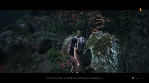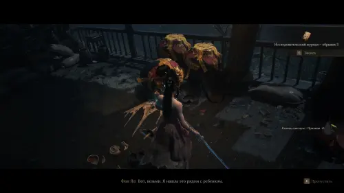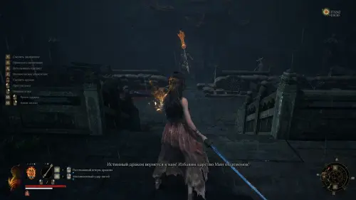Пройдите по тропинке справа от алтаря и поговорите с Фан Яо, которая передаст вам очередной отрывок из Исследовательского журнала. Также вы получите очень важный артефакт, влияющий на концовку игры — Кольцо Сансары - причина.