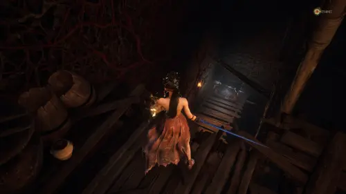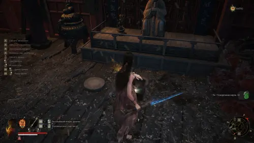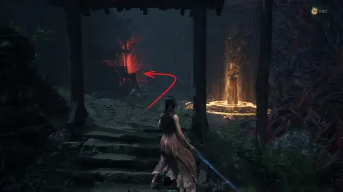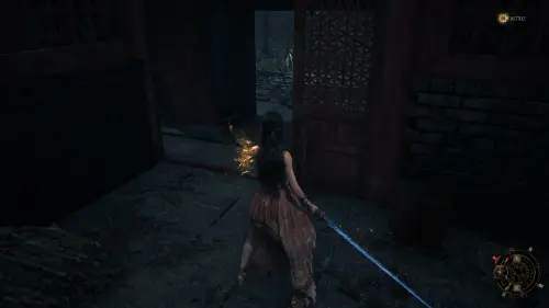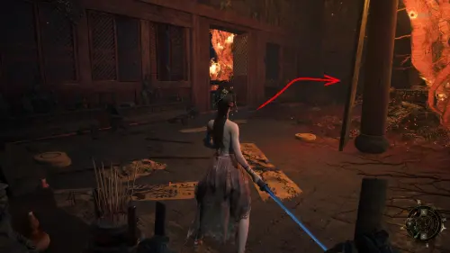 Покиньте арену и сверните влево, чтобы попасть в святилище Шу. Зайдите внутрь и сразу поднимитесь по лестнице справа в комнату, где вы ранее сражались с боссом Лу Бинчжань.