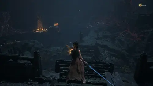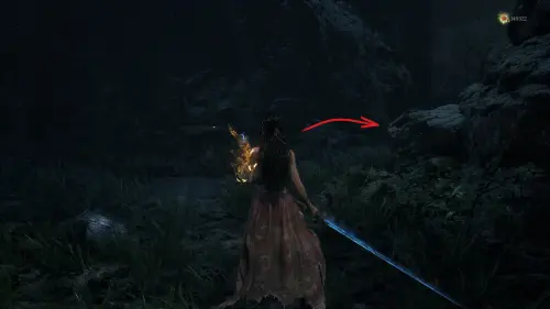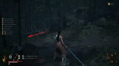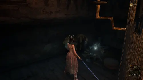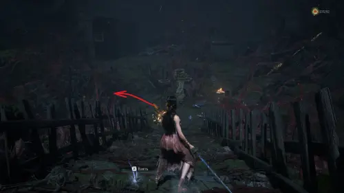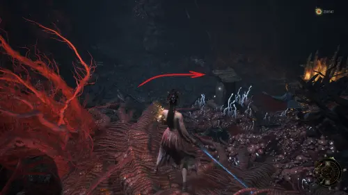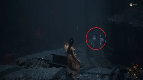 Добравшись до Жертвенной башни, обойдите ее и зайдите через дыру в стене, чтобы попасть на уровень ниже. Спрыгните с деревянной платформы и заберите из сундука Забытые воспоминания.