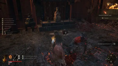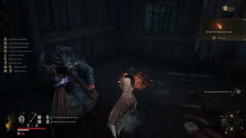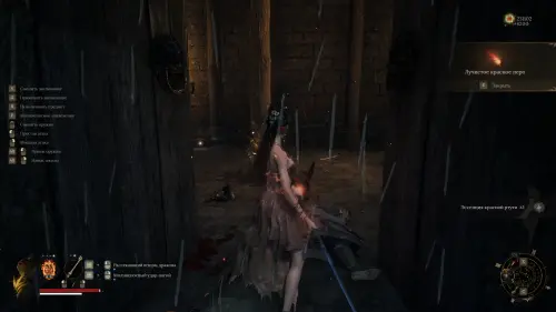 Вновь сверните в левую сторону к воротам, ведущим в Священный храм. Перед тем как открыть ворота, забегите в дом справа, чтобы получить Лучистое красное перо и Эссенцию красной ртути, после убийства моба.