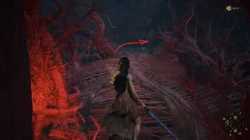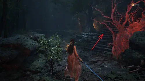 Сверните на тропинку со светящимся деревом и бегите дальше, чтобы попасть на арену с Демоном кошмаров.