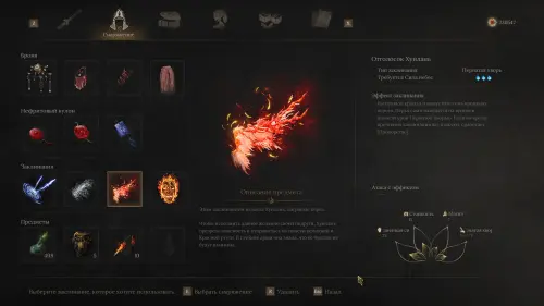 Чтобы дольше продержаться на арене, экипируйте Учан броней, имеющей устойчивость к огню и режущему урону. Так же вам пригодится защита от атак, вызывающих статус Отчаяния и Порчи.