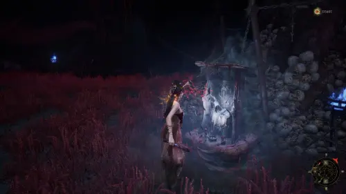 Покиньте двор через проход слева и активируйте святилище Анналюма. Потолкуйте с Магальяйншем, чтобы получить Мазь из арники и бегите вниз по склону.