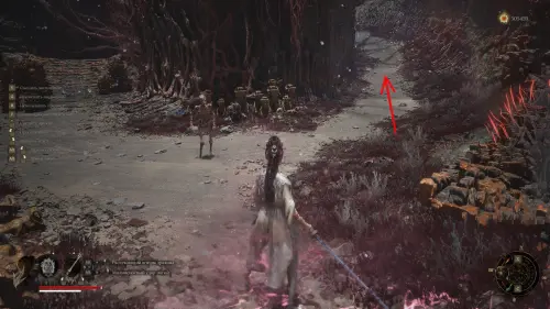 Вернитесь к невидимой дорожке и бегите теперь в противоположном направлении. В конце вас будет ждать мимик-святилище. После победы над мобом вы сможете получите набор расходников и возможность телепортироваться в разрушенную деревню.