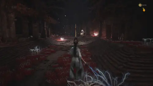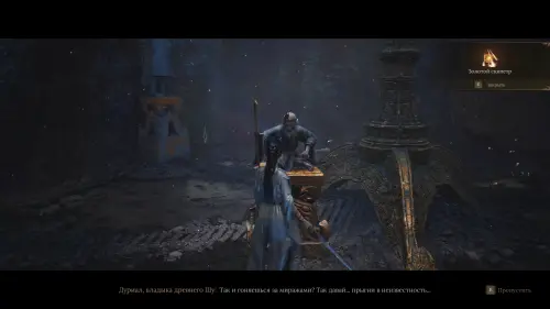 Получив письмена Шэн — Исцеление небес, войдите в следующую локацию. Поговорите с Рассказчиком, чтобы по завершении диалога получить заклинание Золотой скипетр.