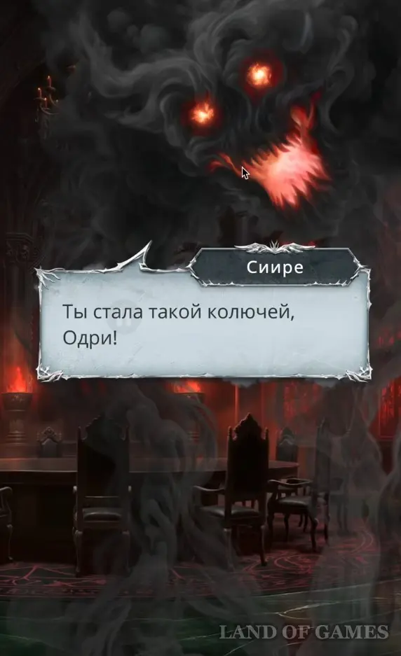 - Согласна с Мамоном (героиня получит +1 к Жестокости).