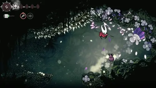 Сначала найдите Звонвилль на западной стороне Панцирного леса. Используйте белые цветы, чтобы подняться выше. После этого двигайтесь направо до конца, затем вверх и еще раз вправо. В пещере с водой и белыми цветами поднимитесь наверх, ударяя белые бутоны и отпрыгивая от них, и уничтожьте цветок на потолке, чтобы забрать второе Сердце.