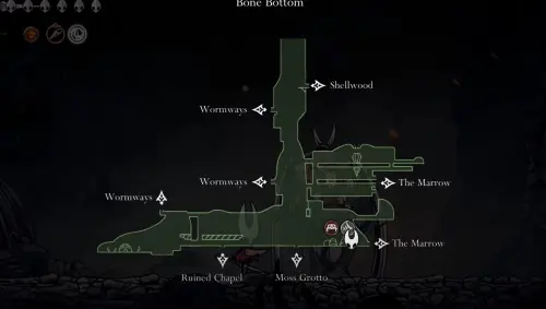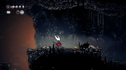Первый кремнежук встречается ближе к Костной низине. Он прячется на выступе слева, держась за верхнюю часть скалы. Чтобы достать его, нанесите удар снизу или сбоку, сбивая его вниз для начала боя.