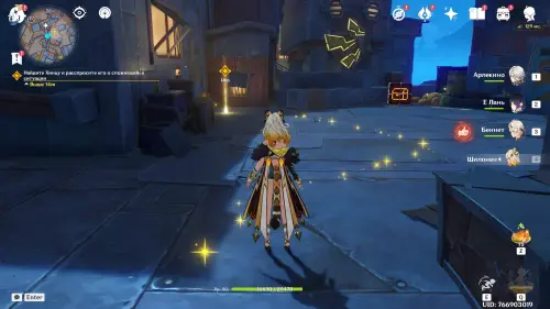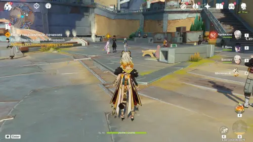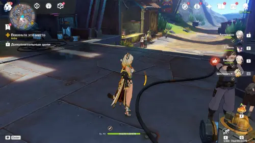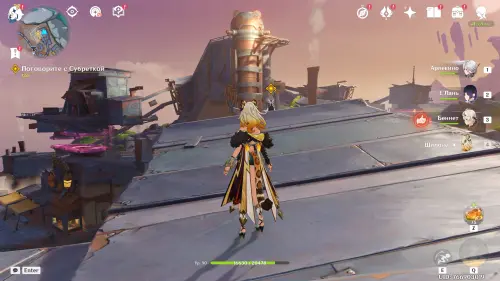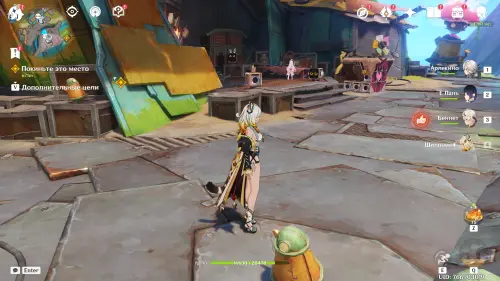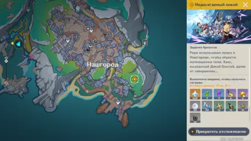 Сначала прокрутите время на два дня вперед с помощью меню Паймон, а затем отправляйтесь в центр Нашгорода и послушайте группу людей, замышляющих что-то противозаконное. Затем подойдите к Айно и Инеффе, стоящих неподалеку. Они попросят вас помочь им с осмотром огромной пушки.