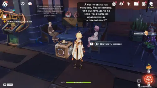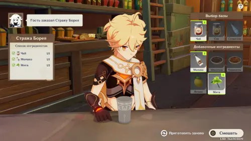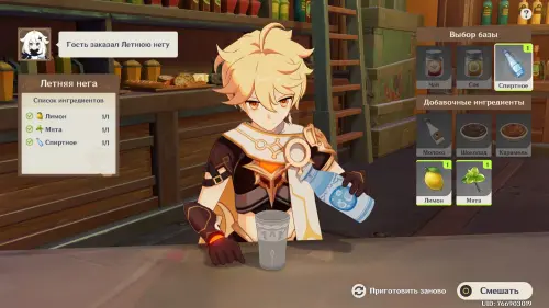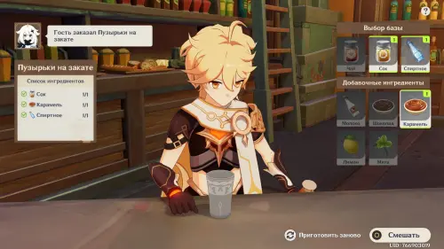 Вновь возвратитесь в таверну и пройдите внутрь благодаря Нефер, которая представит вас в качестве знаменитого бармена из Мондштадта. Далее вам предстоит готовить напитки для различных клиентов, чтобы подслушивать их разговоры и получить нужную информацию.