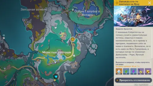 Переместитесь в Чертог серебряной Луны и спуститесь в пещеру, чтобы навестить Коломбину. Далее просмотрите продолжительную кат-сцену, после которой вы разблокируете новую механику под названием «Лунные хроники». Миссия же подойдет к концу. В награду за прохождение данного задания вы получите 875 очков приключений, 38 100 моры, 4 книг героя и 7 единиц волшебной руды усиления.