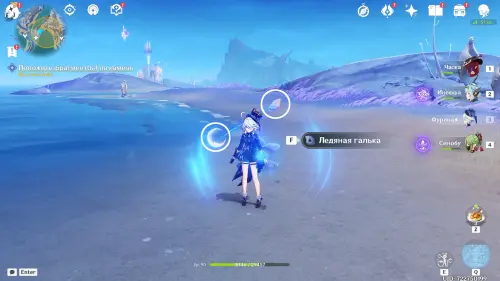В береговой зоне есть два участка, на которых вы сможете отыскать фрагменты скалы, валяющейся на северной половине пляжа. Разберем их сбор в порядке, отмеченном на скриншоте выше.