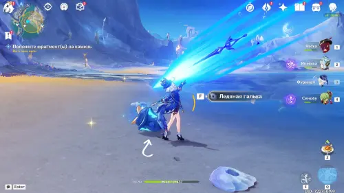 Поднесите двухполюсной осколок как можно ближе к камню и закиньте на него — на этом закончится доставка первого фрагмента.