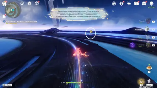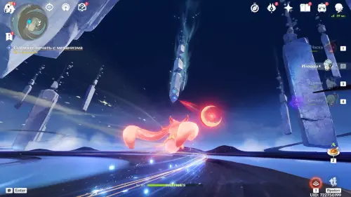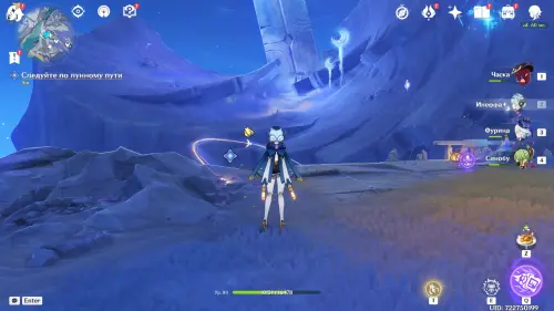 Попав в неизвестное пространство, Верна побуждает помощников продолжить следовать плану. Получив управление над персонажем, используйте парящую рядом куухенки для передвижения по Лунным путям в центре «святилища»:
