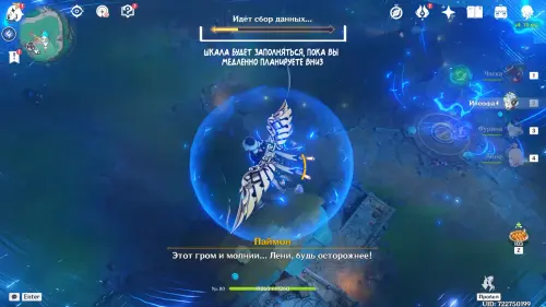 - Позволить герою медленно опускаться вниз, не используя кнопки управления, параллельно дожидаясь заполнения шкалы сбора данных.