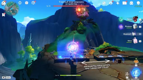 Более крупные защитные поля снова придется активировать вручную, подбирая на земле двухполюсные ядра. Поднявшись к пушке, встаньте около квадратного кубика куувяки и отберите второе накопительное ядро.