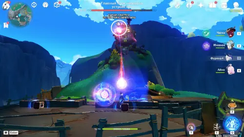 - После каждых двух серий выстрелов на «глазу» механизма будет появляться прицел. Нажимайте лунный скилл, чтобы подобрать заряд, и сразу отправляйте его обратно (все на клавишу «T») — каждое попадание будет отнимать у врага 1/3 ХП.