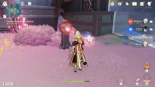 Подойдите к светящемуся маркеру впереди и выключите устройство Фатуи, чтобы медуза наконец-то вернула себе силы. Далее начните следовать за Желейкой и посмотрите новую кат-сцену.