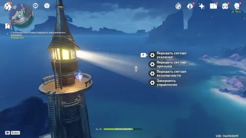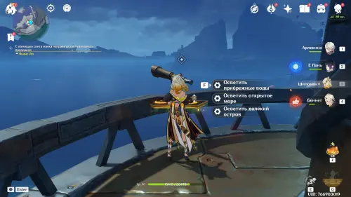 Как и в прошлый раз, заберитесь на самую верхушку маяка и подойдите к подзорной трубе, чтобы зажечь свет. Далее выберите вариант «Осветить прибрежные воды». Потом вам нужно будет выбрать, какой сигнал отправить – следует нажать на надпись «Передать сигнал указания».