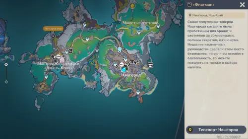 Далее запаситесь ингредиентами: картофель х1, сырое мясо х1, летника х1 и ягоды лакка х1. Первые два продукта встречаются во многих магазинах Тейвата, а вот оставшиеся ингредиенты являются местным лакомством Нод-Края. Летнику можно в больших количествах найти прямо рядом с Нашгородом (первый скриншот ниже), а ягода лакка растет в основном на Звездной отмели (второй скриншот).