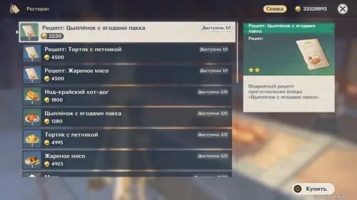 Для готовки данного блюда вам потребуется: мясо птицы х1, сметана х1 и ягода лакка х1. Отметим, что сметану можно изготовить из молока (опять же продается во многих магазинах Тейвата) в разделе «Заготовка ингредиентов» (находится в том же меню, что и готовка).