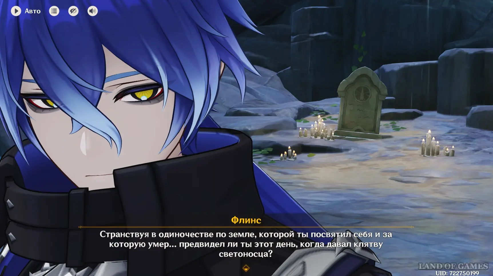 В присутствии альва надписи на надгробном камне засияют голубым. При осмотре могилы Флинс поведает несколько фактов об упокоенном в ней герое, а под конец монолога за спиной появится сам Сигурд — одолейте истребителя нечисти, чтобы дослушать мнение Кирилла.