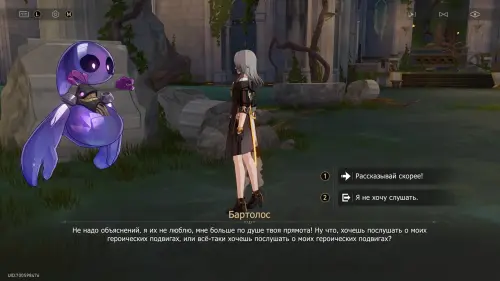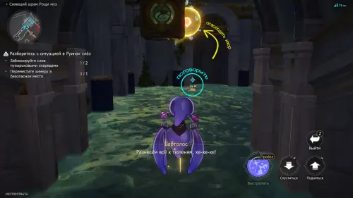 После отправляйтесь в «Руины слез» — подтопленную комнату с одноименным телепортом на востоке 1-го этажа Сияющего шрама Рощи муз. В помещении стоит Бартолос, приблизившись к которому сразу начнется диалог. Выберите ветку «Рассказывай скорее!», после которой начнется прохождение миссии.