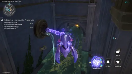 В центре комнаты стоит затопленная безликая статуя, на которой сидят химеры — поговорите с ними, чтобы узнать, что снизу есть еще существа, которым нужна помощь. Затем пролетите на южную половину зала и забейте пузырьками слив на стене.