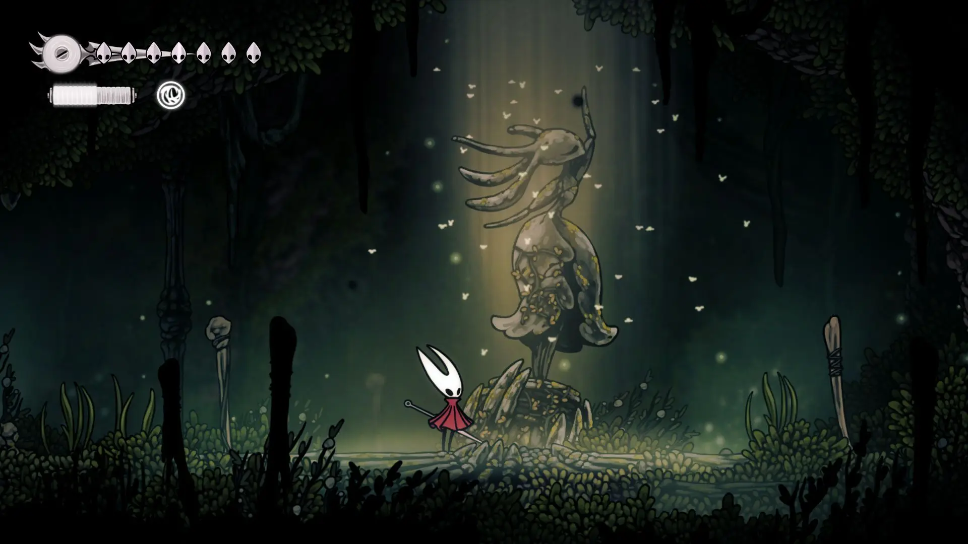 Последний будет находиться недалеко отсюда. Как только его исследуете, Хорнет попадет в клетку и упадет вниз.