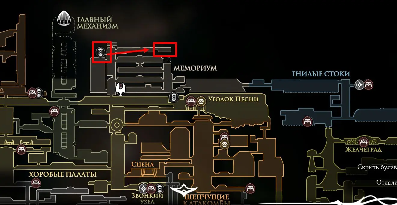 Первый лежит через «Мемориум», а второй через «Желчноводье». Проще попасть туда через Цитадель через секретный проход, до которого можно добраться только благодаря Цепкому захвату и Двойному прыжку.