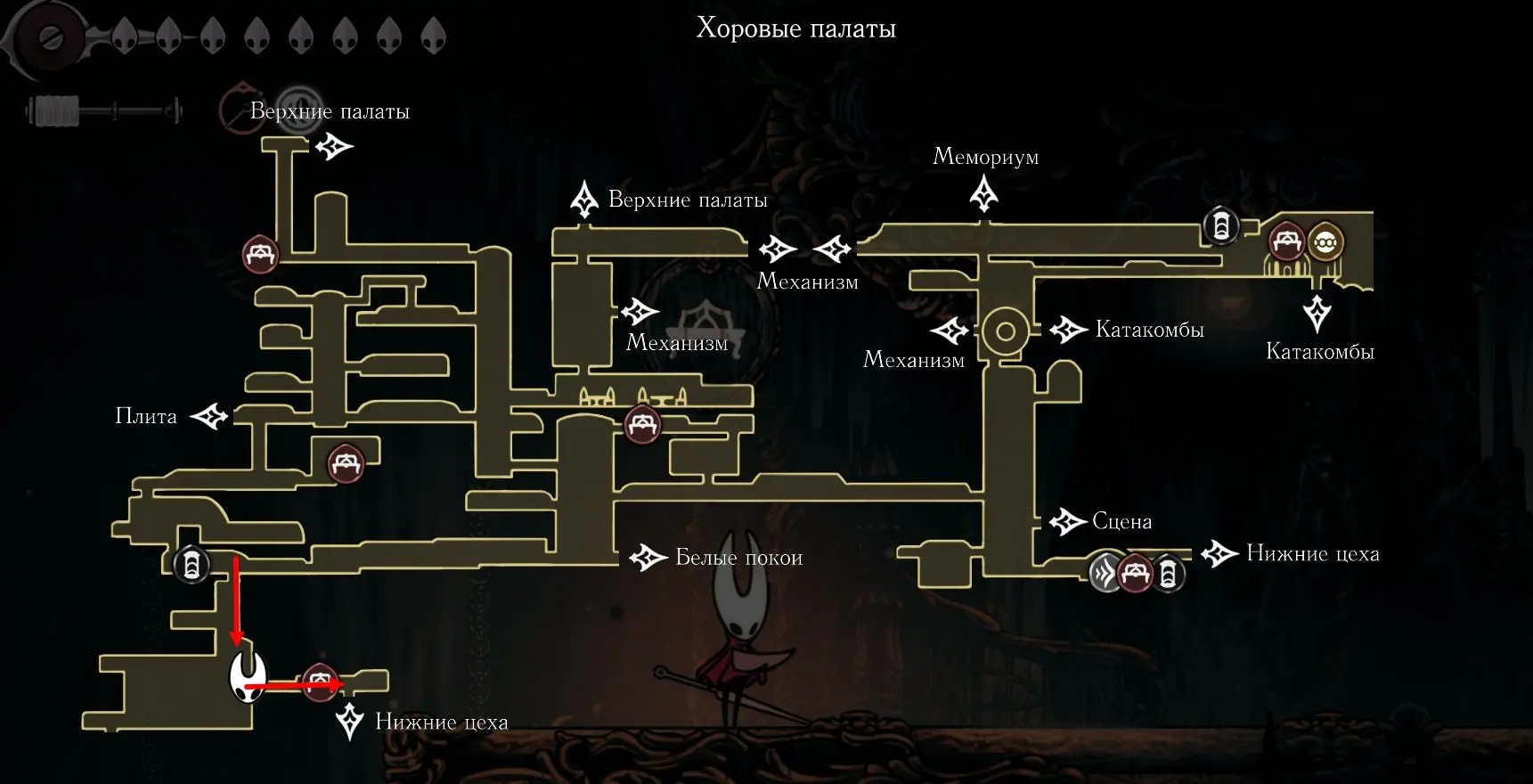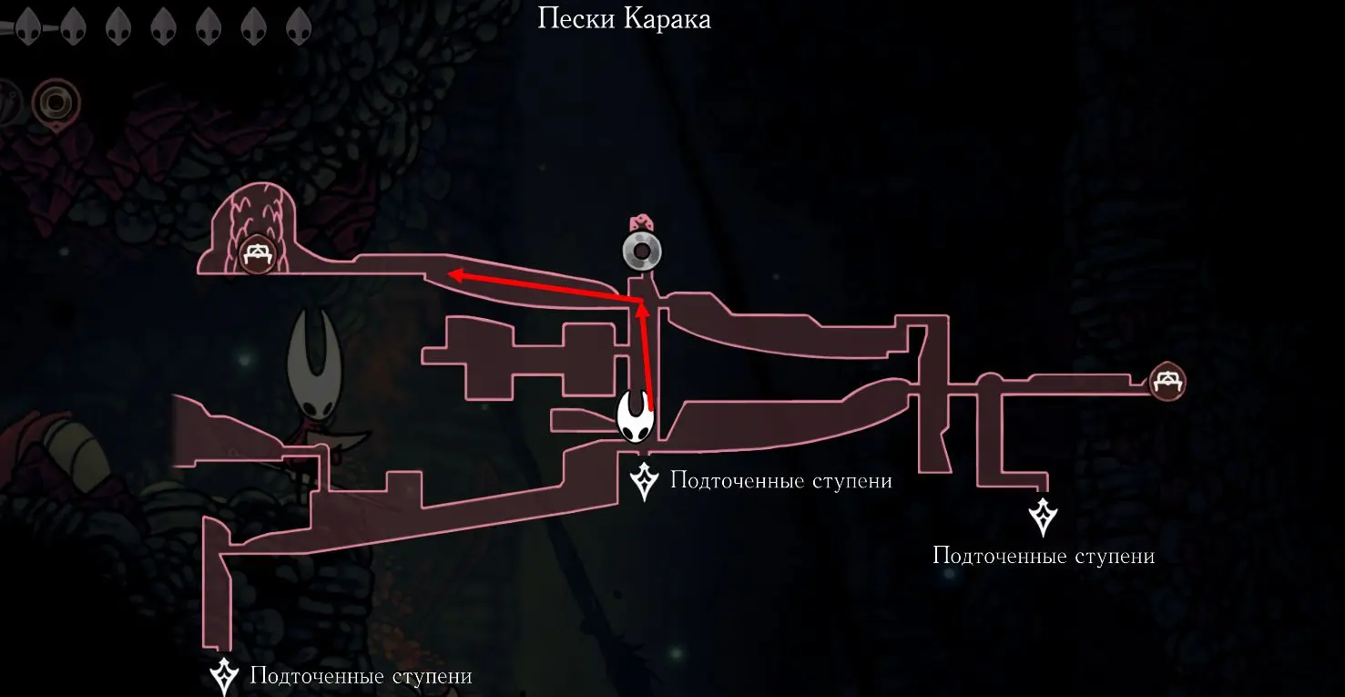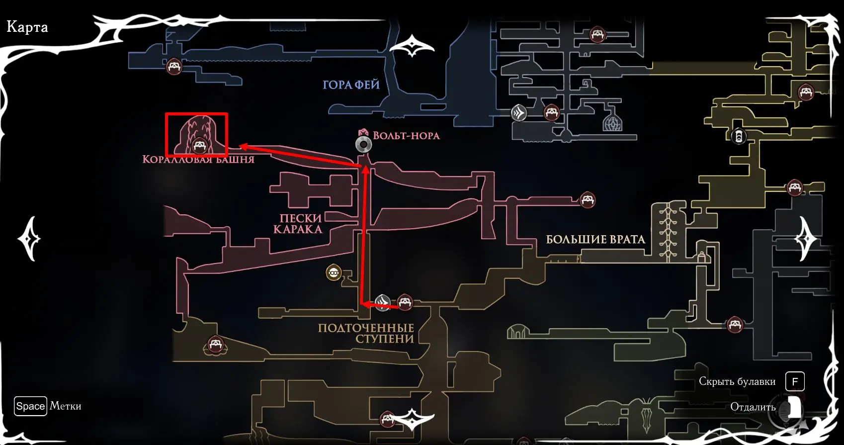 На вершине идем налево до Коралловой башни, мимо арены, где сражались с Коралловой мухой (очередной босс).