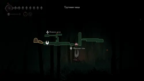 От местной станции «Звонкий путь» поднимаемся в левую часовню. Прыгаем до самого верха, в крыше имеется пробоина, через которую проще всего попасть в «Трутовую чащу».