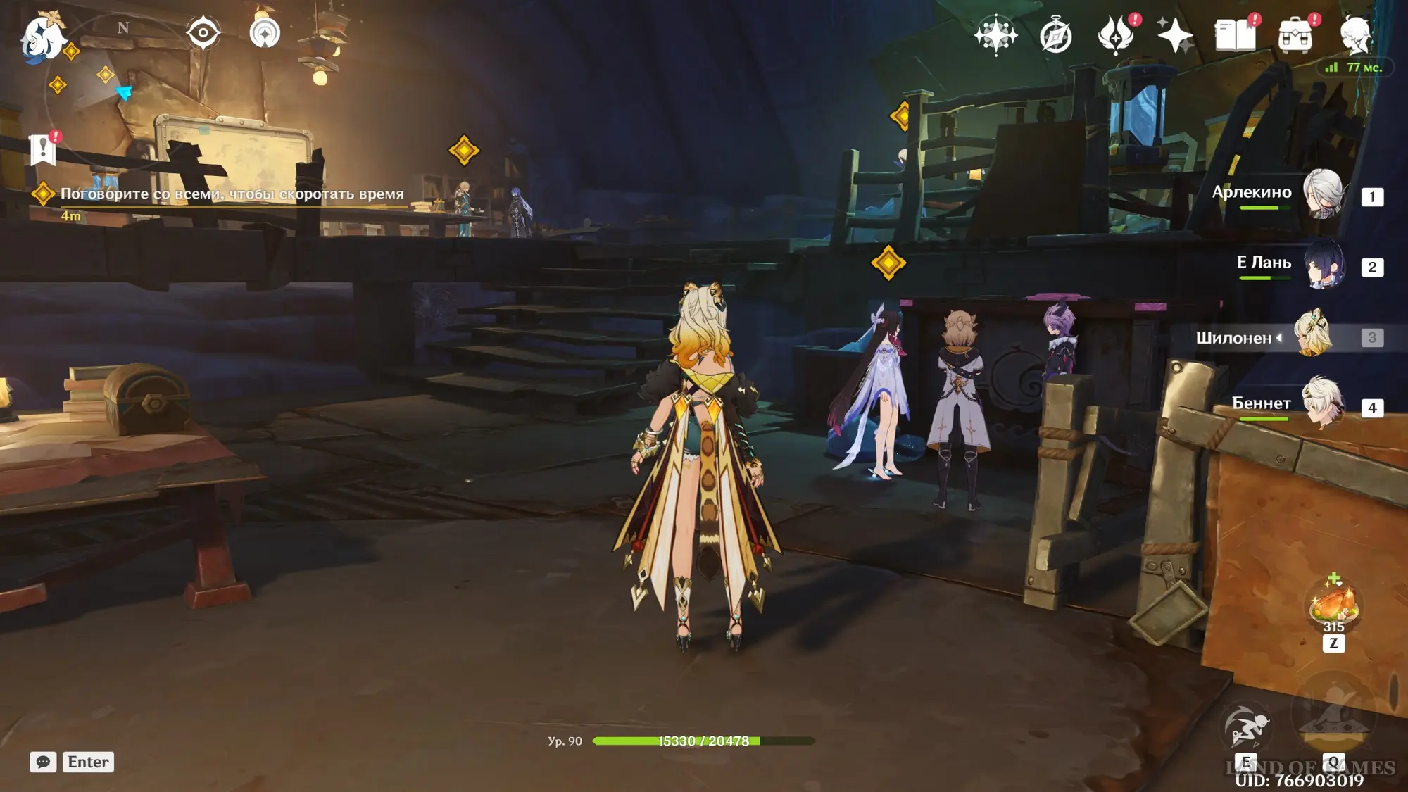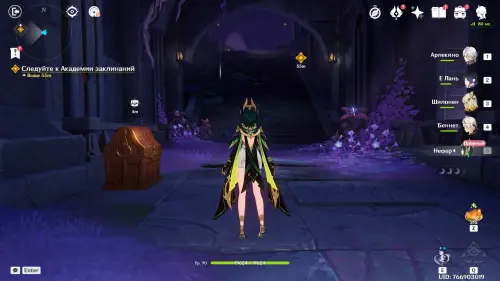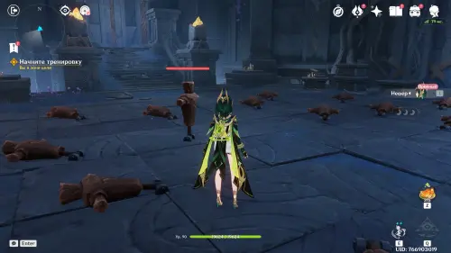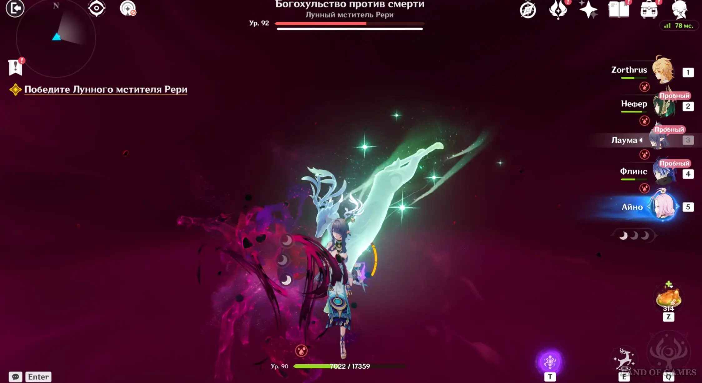 На этом этапе вы получите под управление Путешественника, Нефер, Лауму и Флинса. Айно тоже будет указана частью команды, однако играть ею вы не сможете, а лишь прожимать ее аватар, чтобы вызывать способность изобретательницы и на время накладывать Гидро на врага. Это очень важно, поэтому не забывайте применять ее навык.