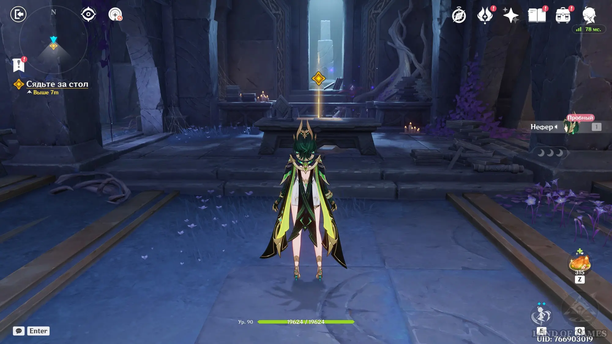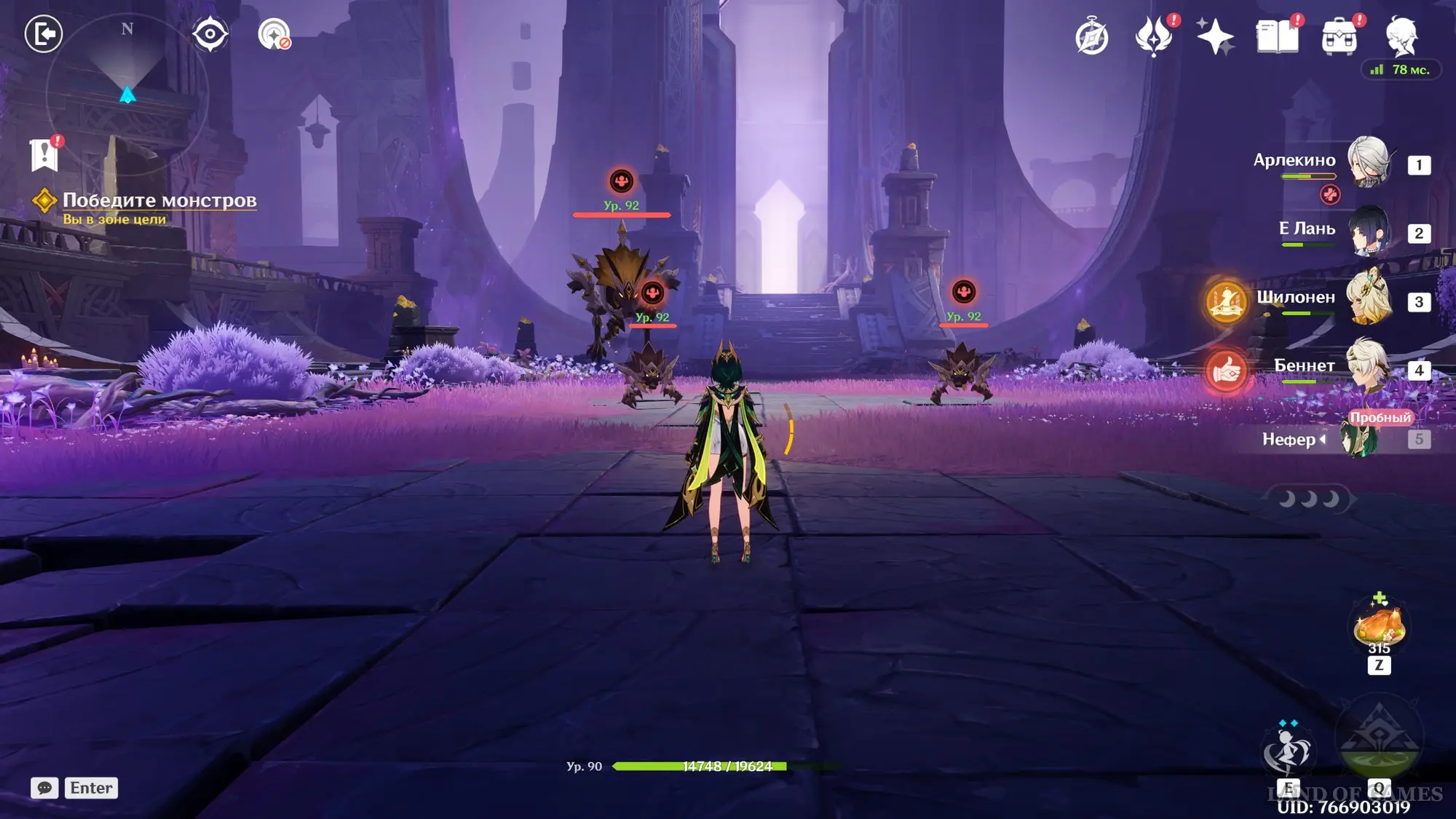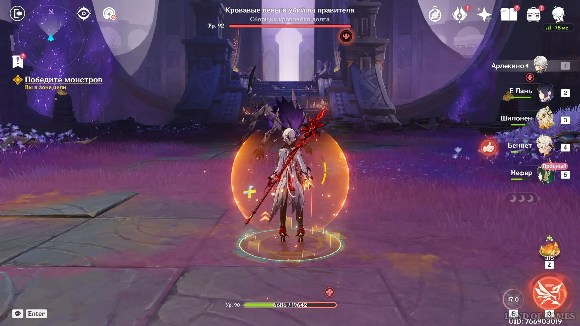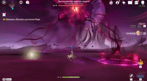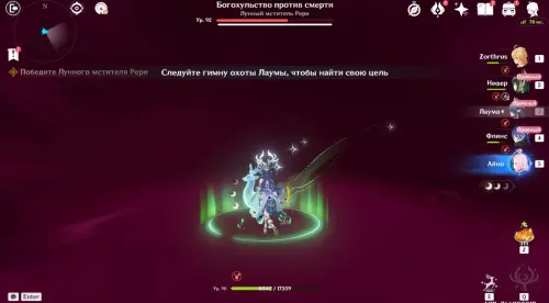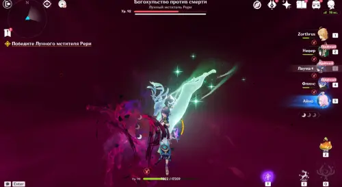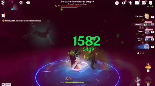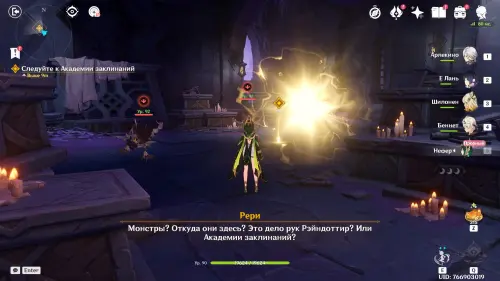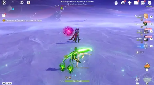 Вам предстоит драться с Рери, используя всего двух персонажей – Путешественника и Нефер. Сначала используйте Гидро способности ГГ на враге, а потом переключайтесь на Змейку и применяйте ее базовую ротацию из двух Е-шек и 6 усиленных заряженных атак для нанесения максимального урона.