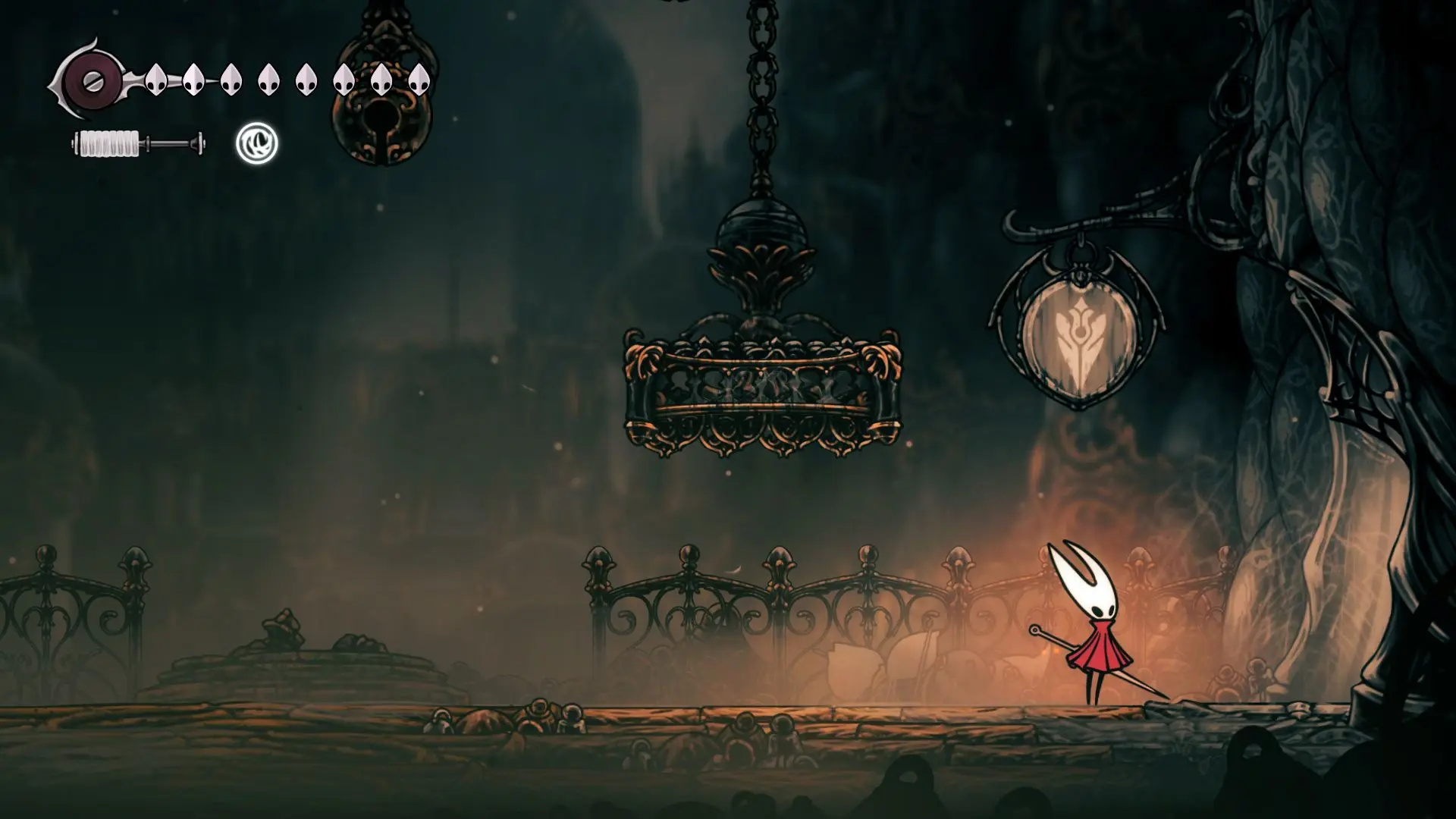 Когда вы это сделаете, пройдите направо к закрытым воротам перед пропастью. Там лежит ключ от новой локации.