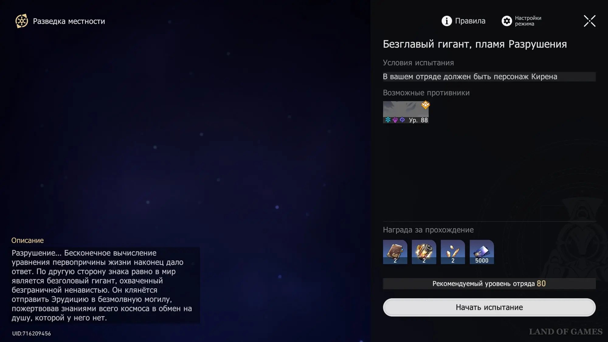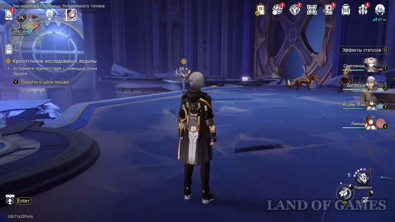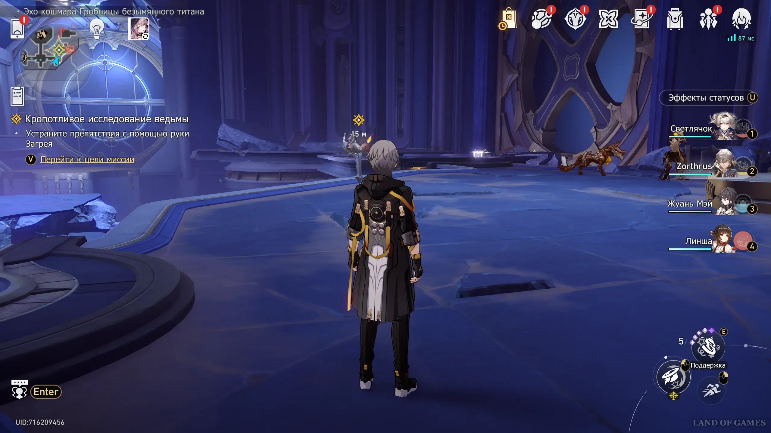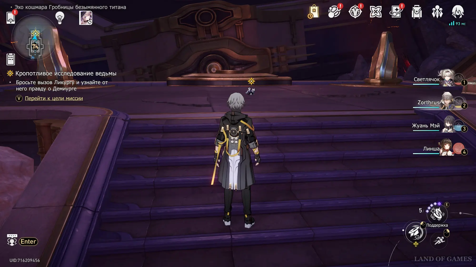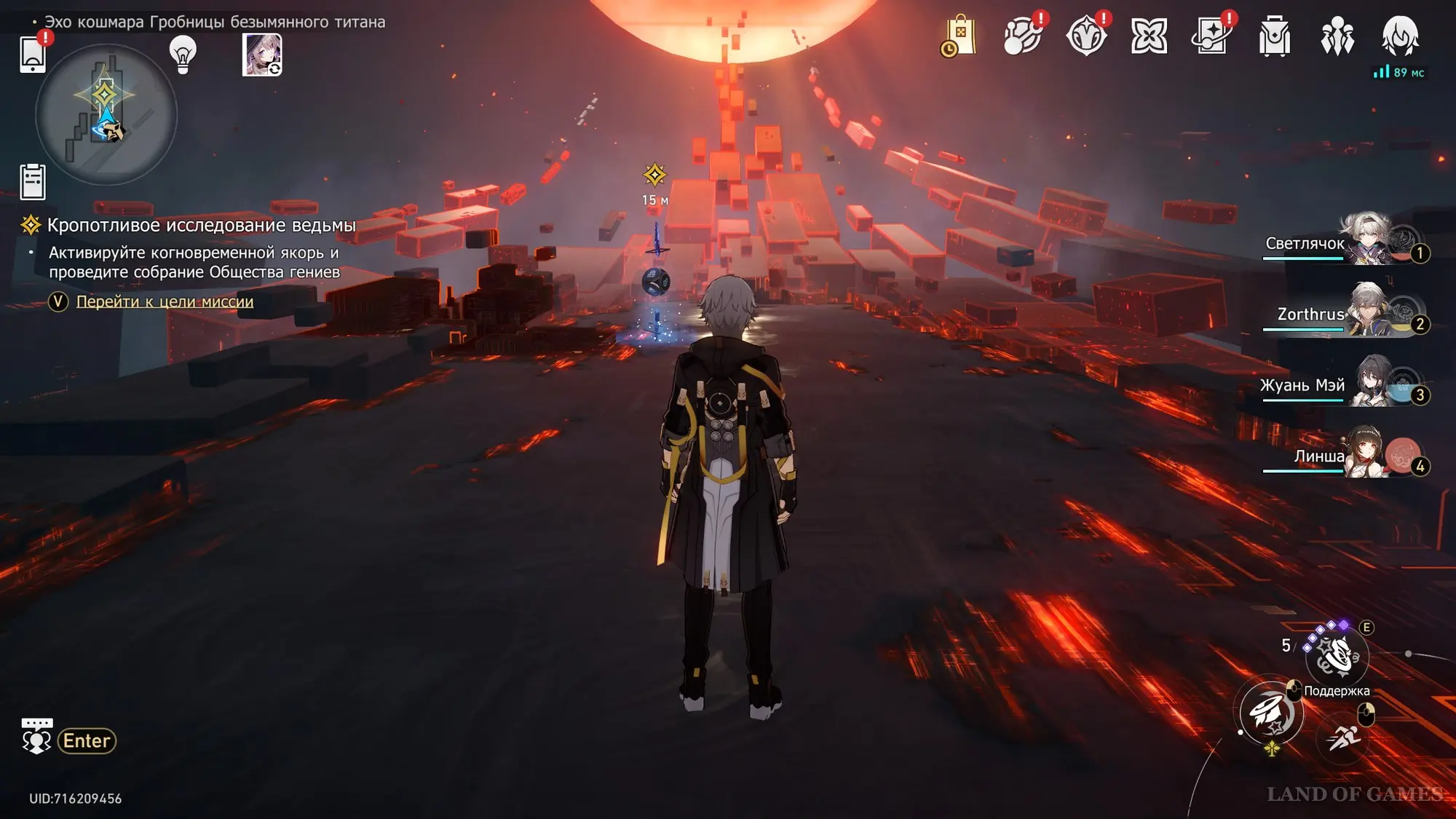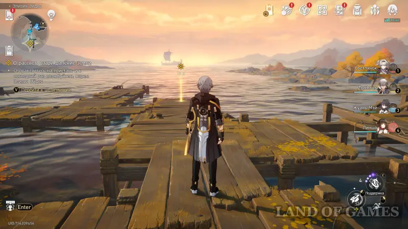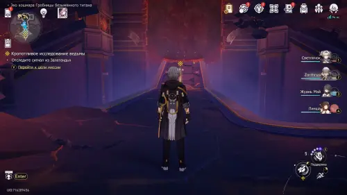 После начала задания отправляйтесь в Элизию Эйдес и пообщайтесь с преобразившейся Киреной возле качелей. Обсудив план с Дань Хэном и Март 7, в последний раз посмотрите на море, пройдя на пристань. Затем вы перенесетесь в гробницу безымянного титана и увидите Демиурга.