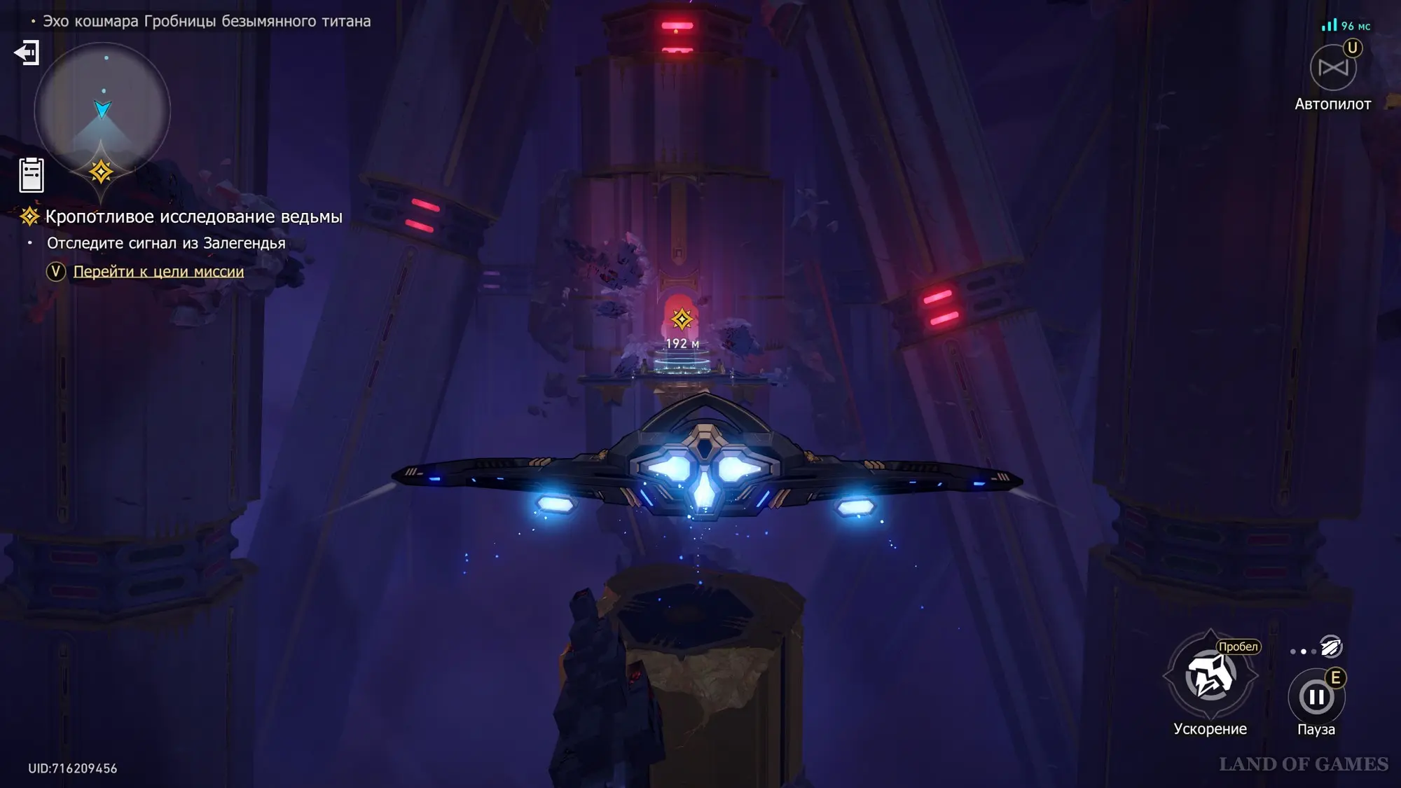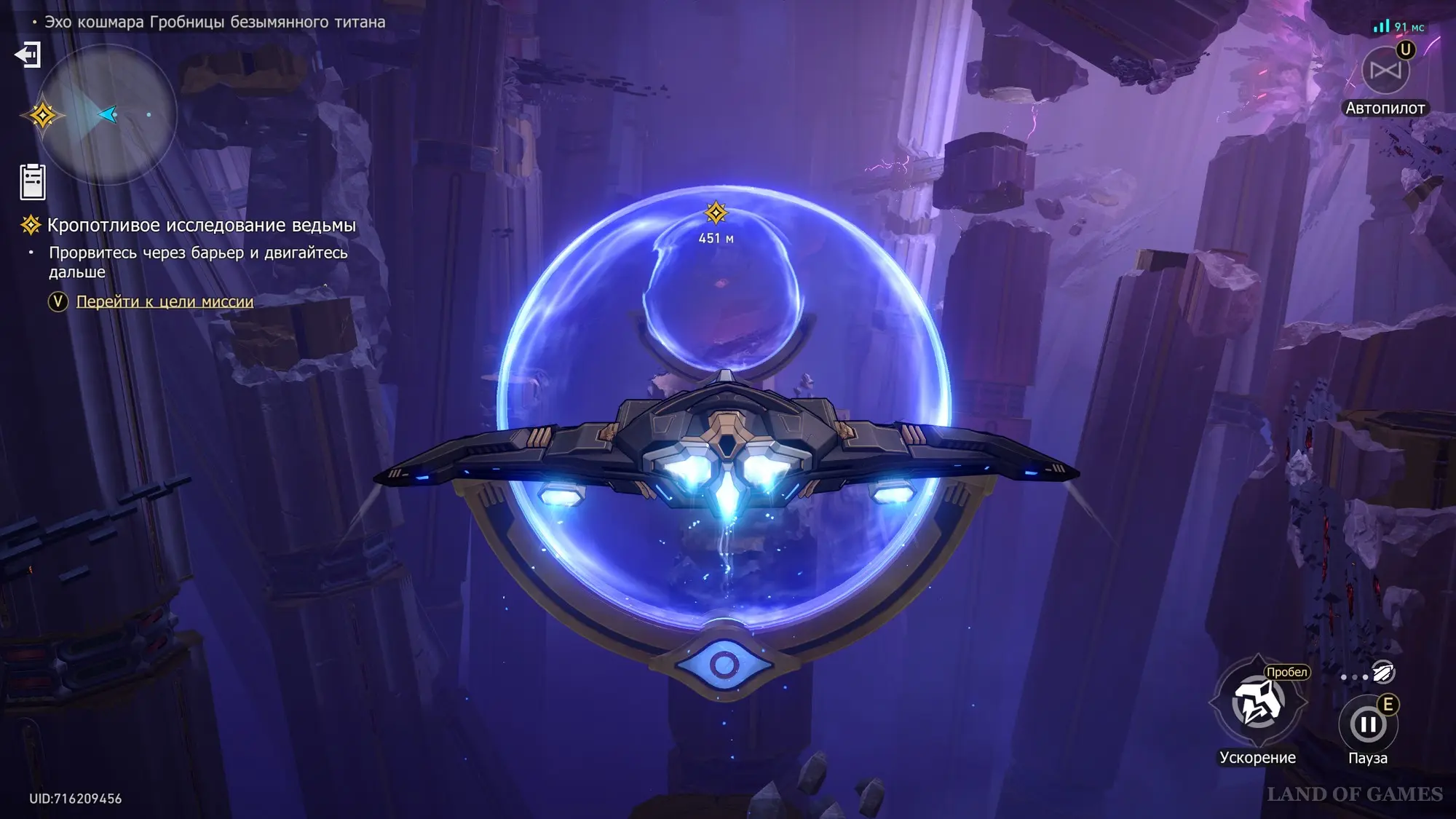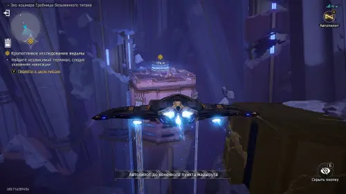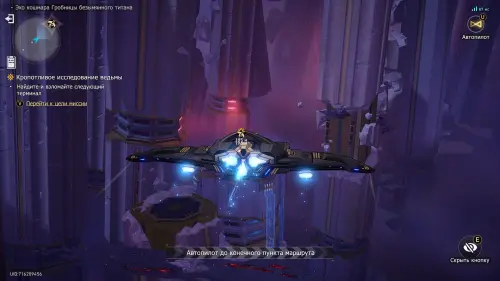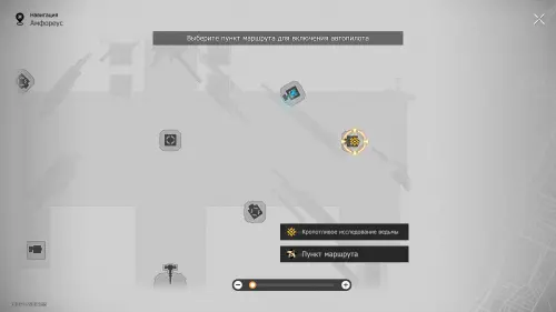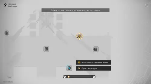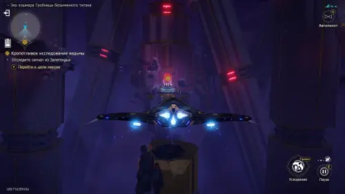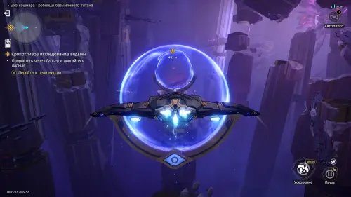 Прослушав диалог гениев, снова сядьте в «Омелу», а потом откройте карту, выберите маркер, нажмите на надпись «Пункт маршрута» и активируйте автопилот, чтобы быстро добраться до следующего места и выстрелить в барьер вторым лазером. Затем летите к последней точке назначения и активируйте третий луч.