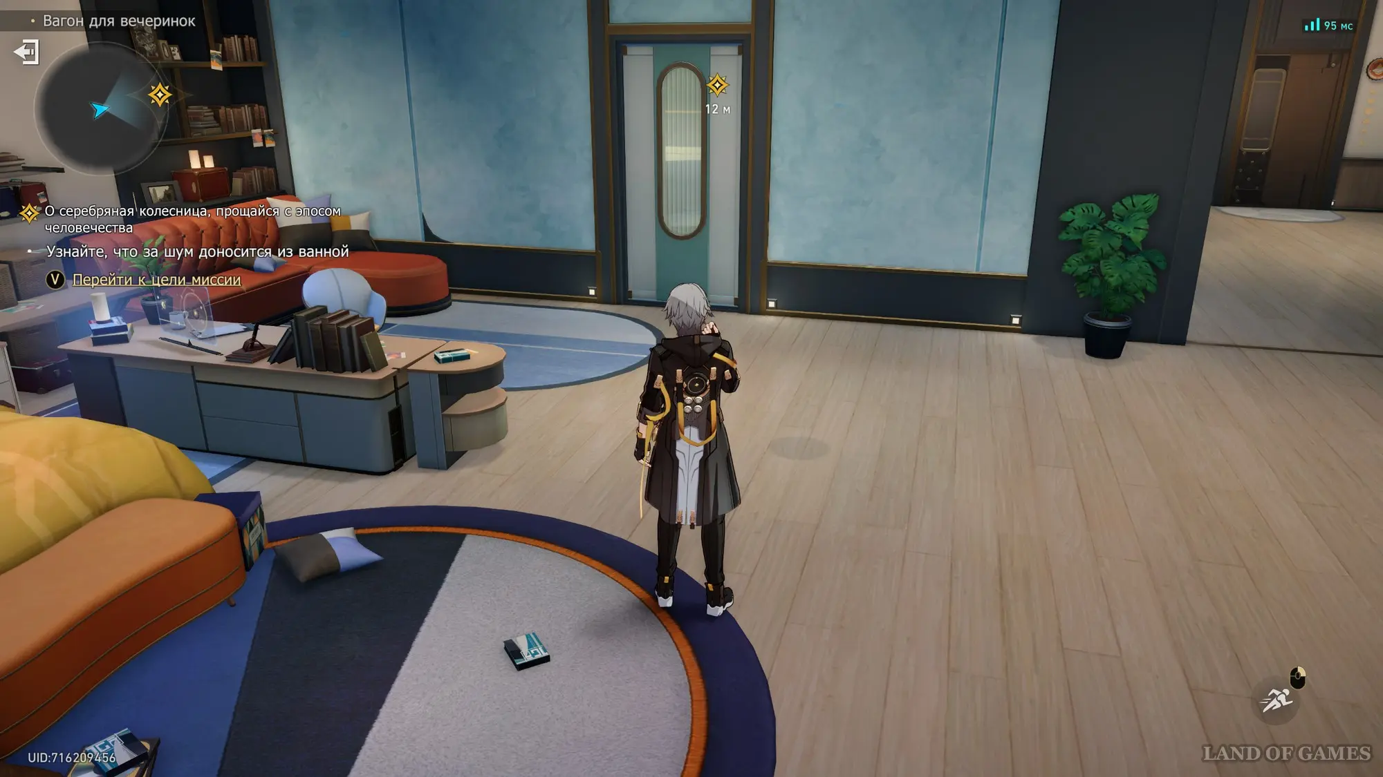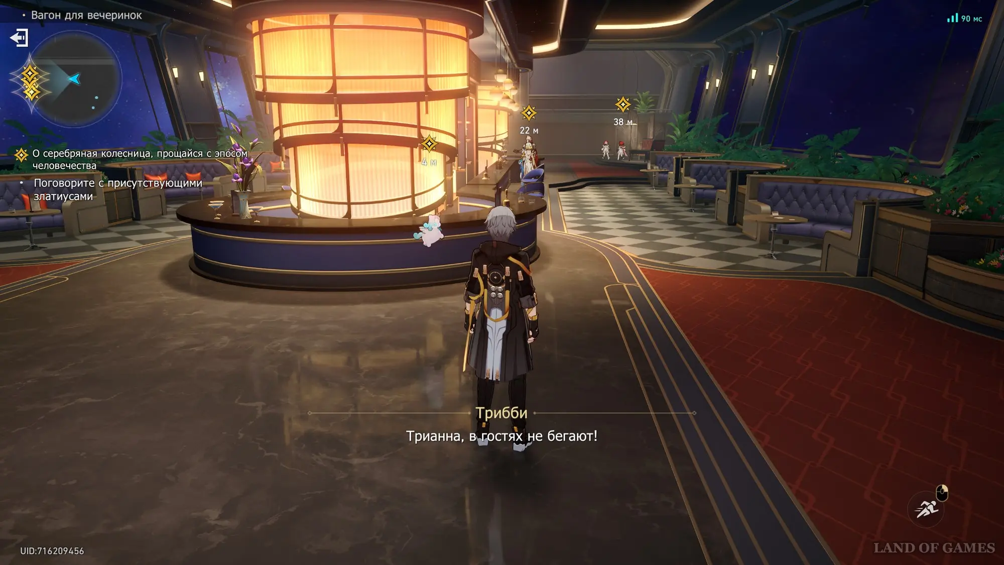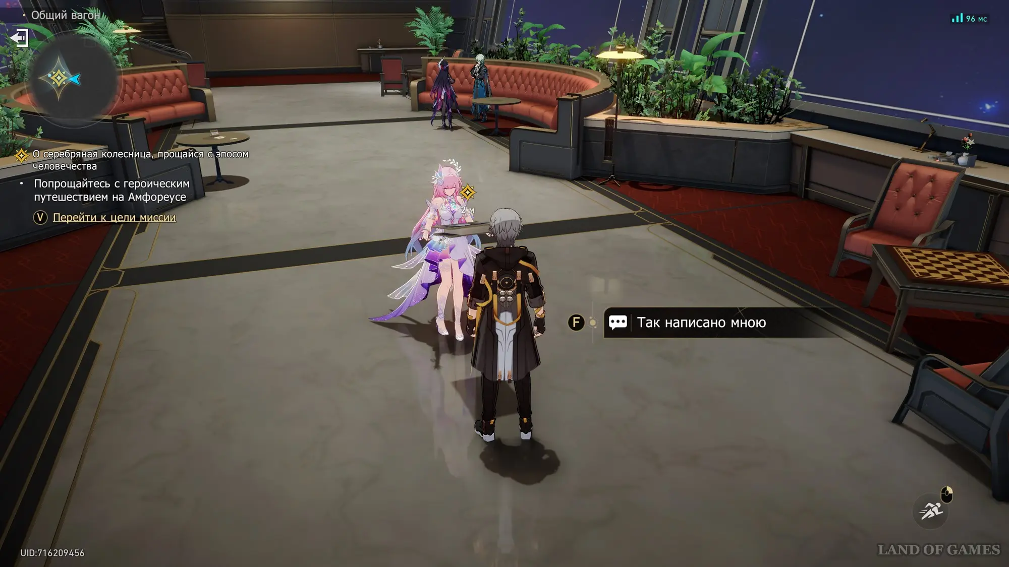 Вы окажетесь на Звездном экспрессе в своей комнате. Пройдите в ванную комнату и осмотрите ванну. В ней вы обнаружите Касторию и Цифер – поговорите с ними. Потом отправляйтесь в вагон для вечеринок и побеседуйте там с другими златиусами. Затем идите в общий вагон и пообщайтесь с Гисиленсой, Анаксой и Фаеноном.