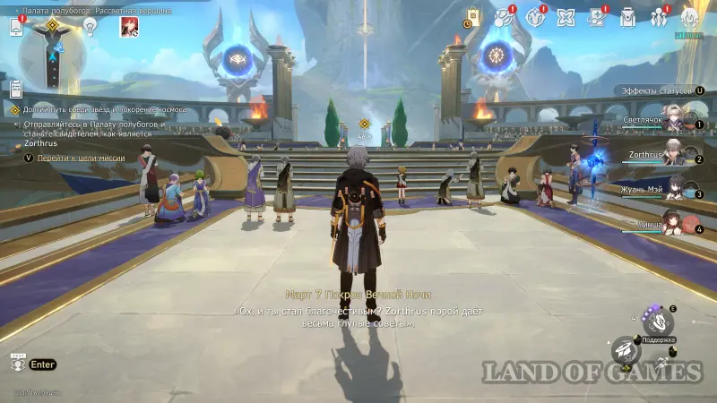 Далее вы переместитесь на планету вечности. Посмотрите новый ролик с Март 7 и пробуждением Первопроходца. Затем бегите вперед на главную площадь и послушайте продолжительный монолог главного героя, после чего миссия подойдет к концу.