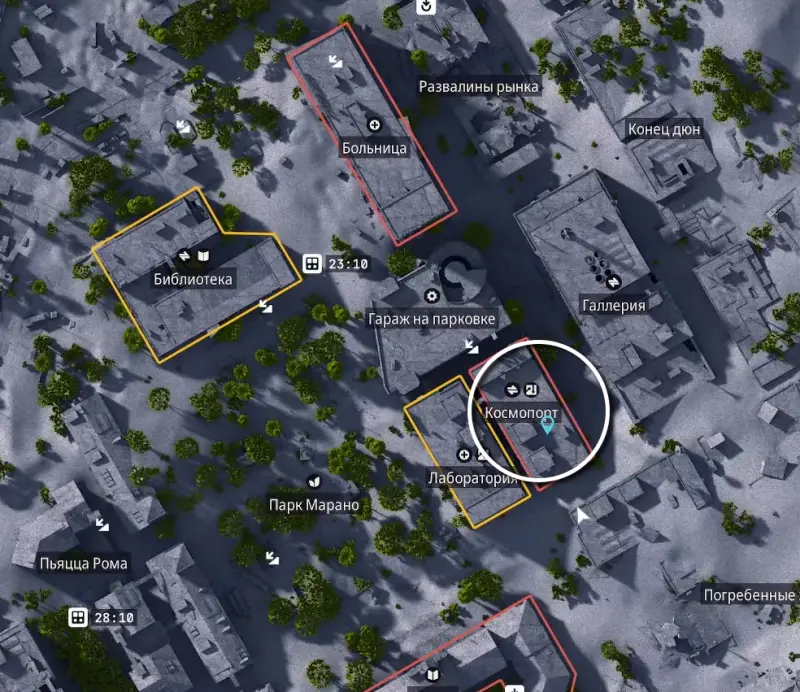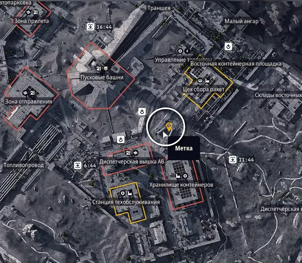 Последний этап проходит на карте Космопорт, где нужно найти ракетные двигатели у цеха сборки ракет. Это место отмечено на карте, но нужный объект не всегда очевиден. Вы ищете ступени ракет с установленными двигателями, расположенные прямо на открытой площадке рядом с главным зданием сборочного цеха.