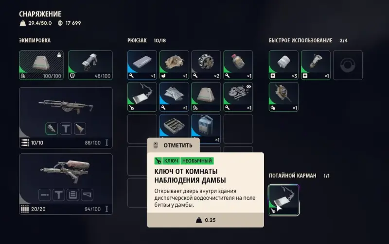 Когда доберетесь до диспетчерской, осмотрите здание – внутри есть несколько комнат, но только одна из них будет закрыта. Подойдите к двери, используйте ключ, и как только замок откроется, квест обновится. Внутри можно найти пару ящиков с ценным лутом: расходники, патроны и детали для модификации оружия. Иногда дверь оказывается уже открытой – это значит, что другой игрок использовал свой ключ. В таком случае просто войдите в комнату, и прогресс также будет засчитан.