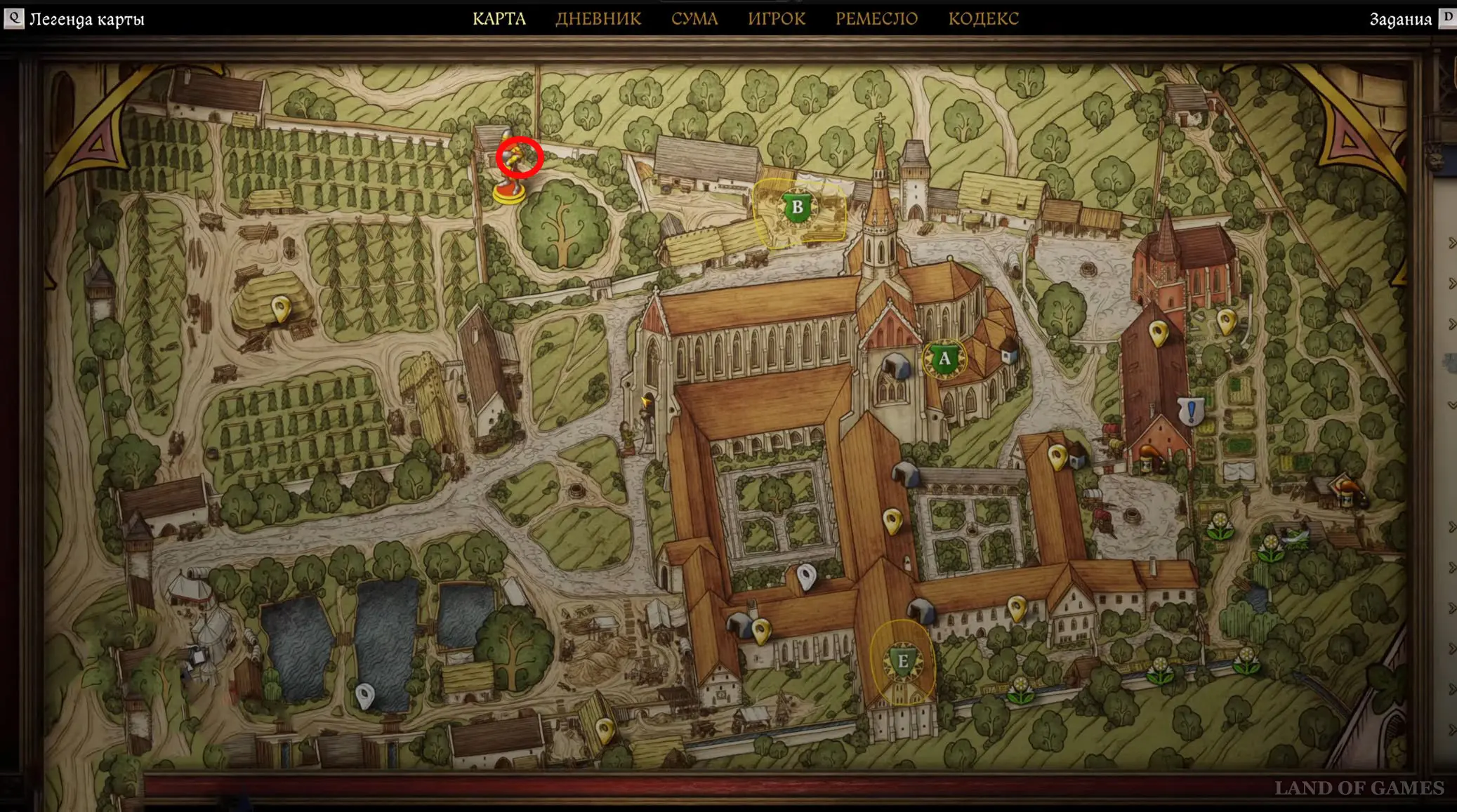 Мяту можно отыскать в небольшом монастырском Лесосаде, расположенном в юго-восточной части локации. Нужно пройти через ворота восточнее от входа в лечебницу, и вы окажетесь на своеобразной хозяйственной территории с амбарами и грядками. Осмотрите последние, чтобы найти мяту.